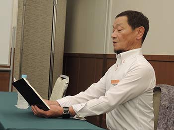 | 進行は塩田浩三幹事。塩田幹事ならではのハキハキとした進行で朝から身が引き締まりました。 | |