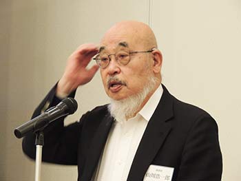 | 現代の孔子様といった風貌の「大阪鴻池倫理法人会」土岐功明初代会長。 驚いたことにこのお方松山市出身の愛媛県人。若いころに大阪に移り住み鴻池倫理法人会初代会長にまでなった凄いお方です。しかもこの日の講演した仲田講師の家のすぐ近くにお住まいだったとか。偶然とはいえ不思議な縁を感じますね。(^^) | |