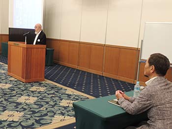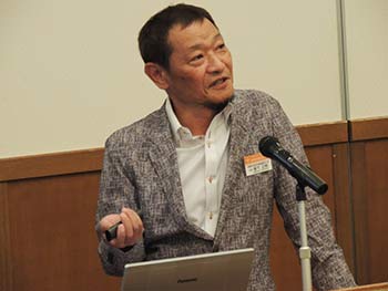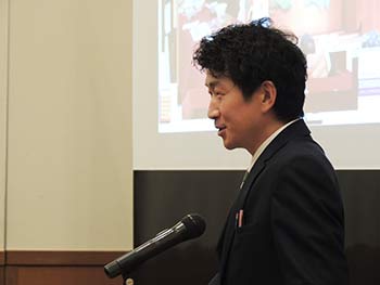 | 本日山川会長のご欠席により会長挨拶を務められた岸副会長。講師の先生のご紹介も大変ユーモラスに!「今から始まる講演を皆が聞きたくなるような表現」でうまくご紹介してくださいました!さすが我らが副会長!本当にありがとうございます(^^) | |